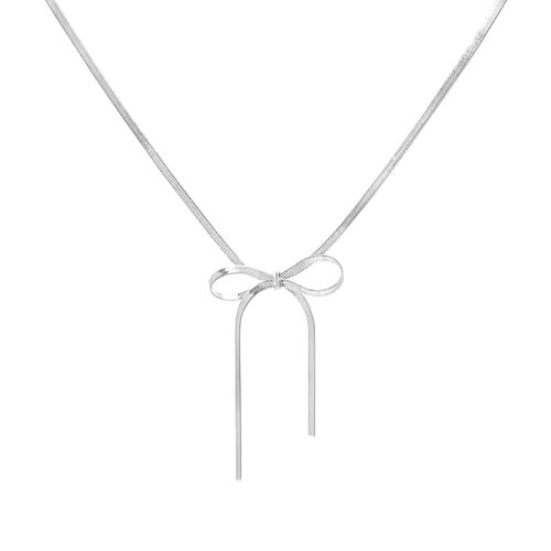 [HARGIO] チョーカー ネックレス レディース リボン チェーン スネークチェーン ジュエリー ペンダント シルバー 銀 シンプル アクセサリー オルチャン 韓国 ファッション ロリータ おしゃれ かわいい 上品 人気 結婚式 パーティー