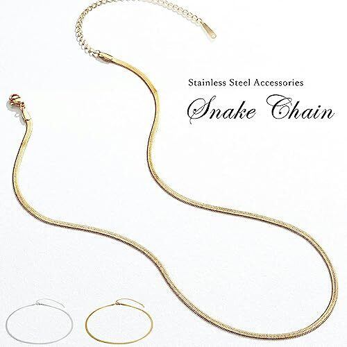 スネークチェーン 3mm ステンレス ネックレス チョーカー シルバー シンプル レディース 重ね付け チェーン 太め シンプル 上品 清楚 結婚式 お呼ばれ アクセサリー 大人め カジュアル オフィス 女性 プレゼント ギフト(1.ゴールド)