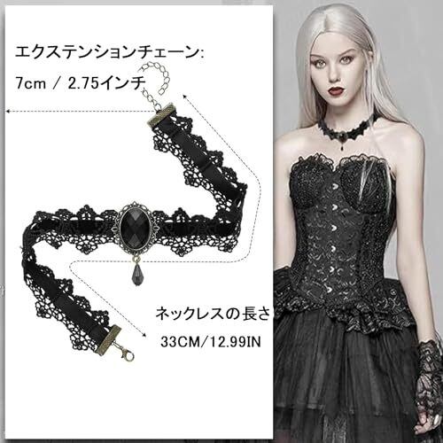 【ゴシック&ロマンティックデザイン】繊細なレースとリボンを組み合わせた、ゴシック調でロマンティックなチョーカーです。ハロウィンやコスプレ、クラシックファッションにもぴったり。 【高品質な人造宝石】中央には輝きのある大粒の人工ルビー風ストーンを使用。光を受けるたびに美しく反射し、首元を華やかに演出します。 【快適な装着感】肌に優しいレース素材で、軽量かつ柔らかい仕上がり。長時間着けても首に負担を感じにくい設計です。 【サイズ調整可能】後部にアジャスター付きチェーンを採用。首回りに合わせて長さを自由に調整できるため、誰でもフィットします。