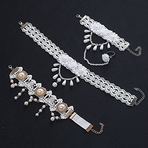 セット内容(白): チョーカー 1点 + ブレスレット 2点(手・腕) デコルテに垂れるチェーンがなんとも耽美な味わいを醸し出すチョーカー、デコルテを美しく演出。 その日の気分で様々な使い分けが可能です。 ハンドメイドで制作された商品なので細かな点が気になる方は購入をお控えください。 ゴスロリ アクセサリー ゴシック ロリータ 白 チョーカー コスプレ 手 首 手首 腕 白