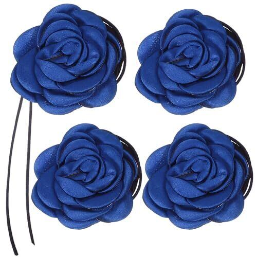 uxcell 女性用フラワーチョーカーネックレス 大きなバラの花柄チョーカーアクセサリー 夏用ネックレス パーティー宝石 少女用 女性用 明るいブルー 4個