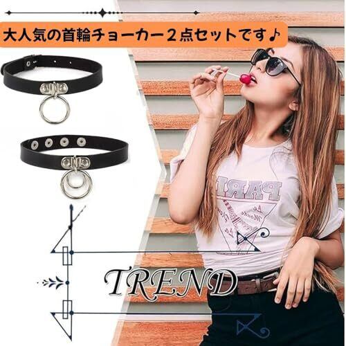 [WONIONI] 2個セット チョーカー レザー 黒 首輪ネックレス 可愛い レディース 鎖骨 首輪 欧米風 シンプル ファション サークル