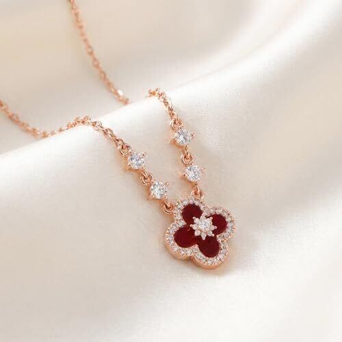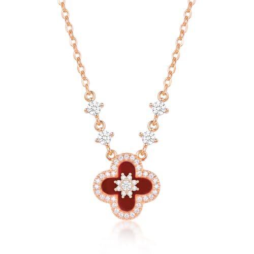 [Puliyunxiang] 四葉のクローバー ネックレス レディース 18K金仕上げ 天然シェル 瑪瑙 多デザイン・多色展開 華奢 ジルコニア 長さ調整可能 金属アレルギー対応 誕生日 記念日 プレゼント ギフトボックス付