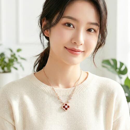 【幸運を運ぶ四葉のクローバー】 幸福の象徴である四葉のクローバーをモチーフにした、上品で華やかなネックレスです。中央には光の角度で表情を変える天然シェルや高品質な素材をあしらい、大人の女性にふさわしい繊細な輝きを放ちます。 【選べる5つの彩り・バリエーション】 清楚なホワイト、優美なピンクシェル、知的なブルー、気品あるグリーン、そして深みのあるレッド。ご自身のパーソナルカラーやその日のコーディネートに合わせて、最適なカラーをお選びいただけます。
