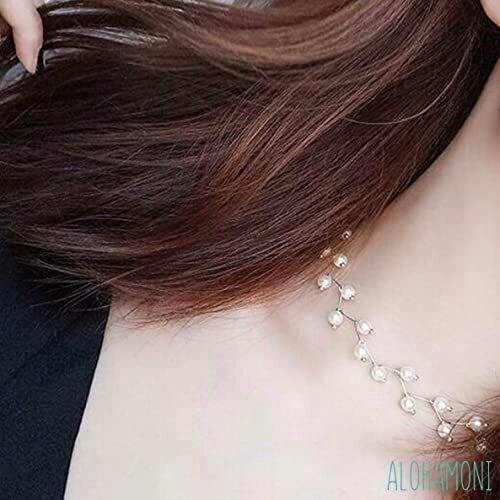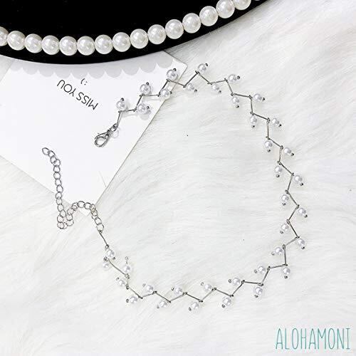 ALOHAMONI (アロハモニ) パール チョーカー ネックレス ジグザグ ワイヤー 2連デザイン 真珠 長さ調節可能 チェーン アジャスター 長さ28cm + アジャスター10cm (シルバー)