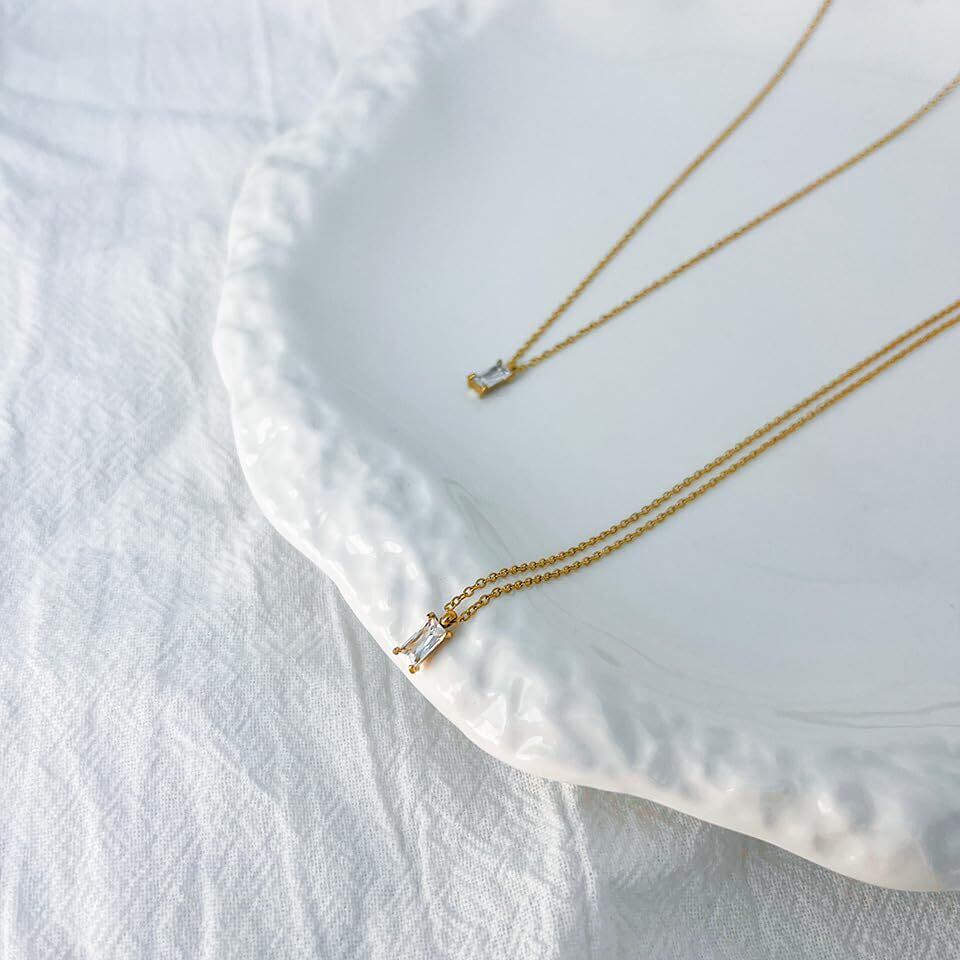 [Rockyu] ネックレス レディース ゴールド シンプル 長方形ネックレス 結婚式 人気ブランド あずきチェーン 40~45cmm 一粒ダイヤ 最高級ジルコニア 1粒 エレガント スクエアペンダント バゲットカットシトリン ステンレス製 金属アレルギー対応 記念日 誕生日 パーティー 彼女/妻/母さんに適用ギフト ファッション アクセサリー