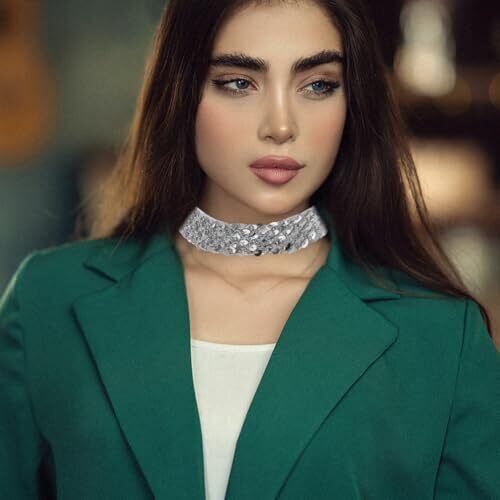 [TENDYCOCO] 2個 スパンコールネックレス 光沢のあるチョーカー パンクチョーカー チョーカーネックレス パーティーチョーカー 調整可能 衣類 シルバーネックレス 飾る 逃す 襟