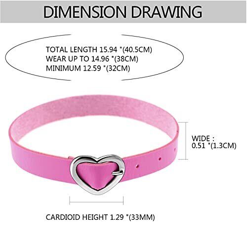 [Flongo] チョーカー 首輪人間 レディース レザー 革 ネックレス ベルト 調節可能 ハート 原宿系 パンク ゴシック ヒップホップ 学生 人気 可愛い cosplay 学園祭 ハロウィン クリスマス 誕生日 記念日 プレゼント ギフト袋付き 4色可選択