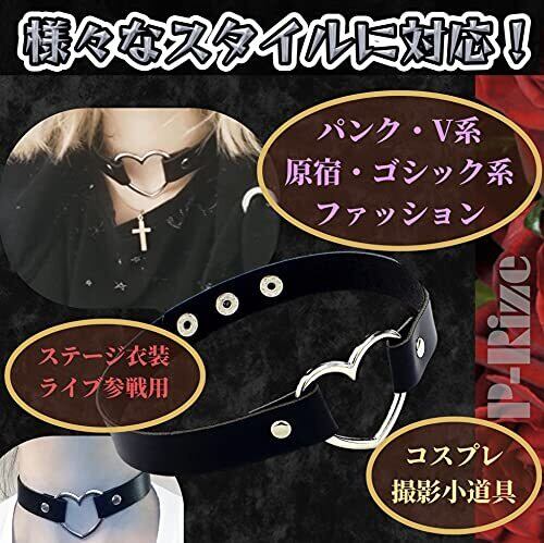 [P-Rize] チョーカー レディース シンプル ハート リング レザー カジュアル パンク V系 ヴィジュアル系 ゴシック コスプレ 衣装 原宿系 人間用 首輪 ネックレス