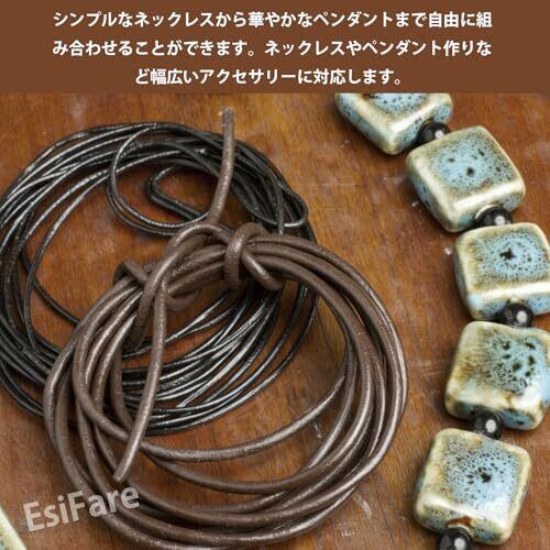 【製品の詳細】牛革紐のサイズ: 直径2mm、長さ約5m/束;丸タイプ;セット:3束入り;材質:牛革;カラー:ブラック+ブラウン+ナチュラル。カット可能で、あらゆる長さにカットしてニーズを満たすことができます。 【高品質素材】この牛革紐は、厳選された天然牛革を使用しており、質感は頑丈で耐久性があります。特殊な加工を施して本革の自然な風合いと柔らかな触感を保ち、長期間使用できます。 【カット自在】1束あたりの牛革紐の長さは約5mで、必要な長さに簡単に切り取ることができます。シンプルなネックレスから華やかなペンダントまで自由に組み合わせることができます。ネックレスやペンダント作りなど幅広いアクセサリーに対応します。 【柔らかく耐久性のある素材】引っ張ても簡単には千切れない強度が魅力です。心を込めて作成したハンドメイド作品は使うぼと味が出て、ながくお楽しみいただけます。革だから固いということはなく、オリジナルを最大限サポートするしなやかさが特徴の牛革紐です。 【多様なDIY用途】この丸いレザーコードはイヤリング、ペンダント、ブレスレット、キーホルダー、スマートフォンストラップ、ネックレスなどの制作に適しています。また、バッグや衣類のアクセサリーなど、様々な手作りプロジェクトにも使用でき、手芸愛好家やデザイナーにとって理想的な材料です。