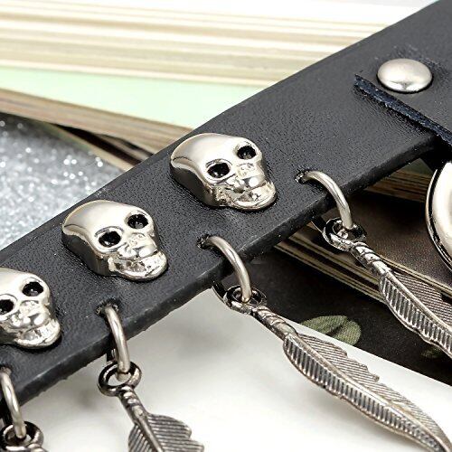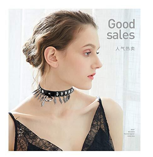 Flongo レザーチョーカー ネックレス メンズ レディース 首輪 黒い 人間用 羽 髑髏 可愛い ファション 調節可能 ダブルリングレ ヒップホップ パンク系 男女兼用 記念日 誕生日 ハロウィン バレンタインデー クリスマス プレゼント(ブラック)