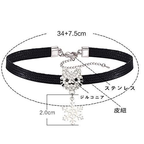 [Rockyu] チョーカー 黒 レディース レザー シルバー 雪華 可愛い 猫チョーカー ジルコニア ネコペンダント 誕生日 パーティー プレゼント ファッション アクセサリー