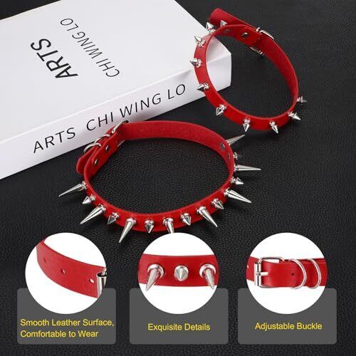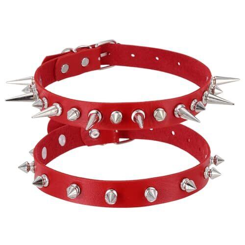 [uxcell] スパいクチョーカー、メタルスパいクスタッド付きリンクレザーカラーチョーカーネックレス ゴシック宝石アクセサリー PUレザーカラー スタッド付きロックネックレス レディース用 レッド 2個セット