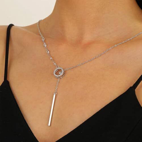 「製品仕様」チェーン全長:80cm ペンダント:約1.3cm 材質:合金、ジルコニア、プラスチックパール。 「エレガントデザイン」リングモチーフのY字型ロングネックレス。ペンダントの長さ調節が可能で、柔らかなジルコニアの輝きが上品な雰囲気を演出。チェーン長80cmのバランスの取れたサイズ設計で、日常のコーディネートにアクセントを加え、時代を超えたスタイリッシュな装いを簡単に実現します。 「高級感あふれる輝き」高品質合金を使用し、ジルコニアをふんだんに散りばめたペンダント。ジルコニアが放つ輝きが上質な高級感を演出。都会的なデザインが洗練された質感を引き立てます。