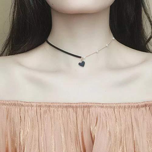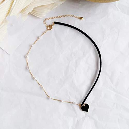 Avance ネックレス ハート パール チェーン チョーカー レディース (Black)