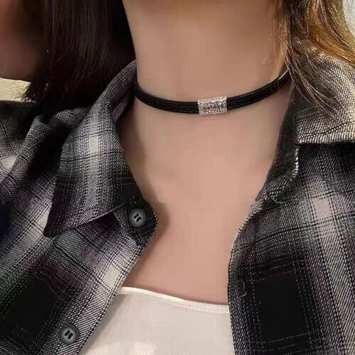 [Izemisonico] チョーカー PU皮革 レディース 首輪 ネックレス レザー シンプル パンクロック v系 ゴシック ヴィジュアル系 原宿 ハロウィン セクシー 女性 仮装 撮影 フェス ライブ 首飾り 春夏 秋冬 (長方形)