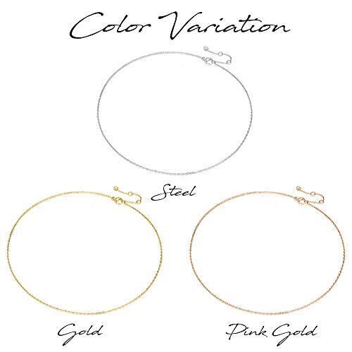 [Pixy Jewelry] Cable チョーカーチェーンネックレス 316L サージカルステンレス Stainless 金属アレルギー対応 安心 レディース 医療用 金アレ シンプル 肌に優しい ゴールド シルバー ピンクゴールド (スチールシルバー)