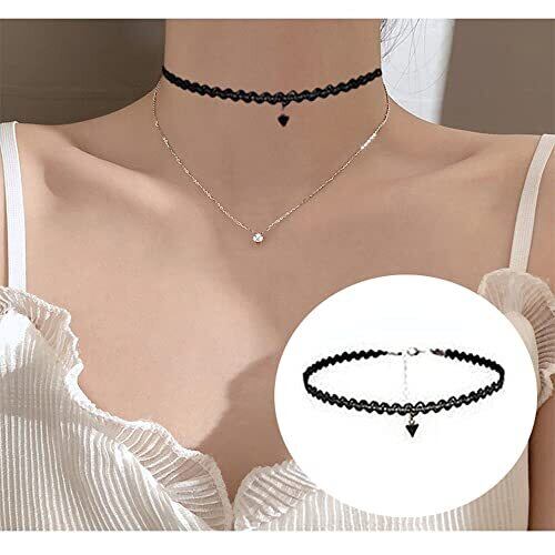 [サムコス] レディースチョーカー 20点セット リリィチョーカー リボン作り ペンダント付き カジュル ブラックセット 伸縮タイプ 調整可能