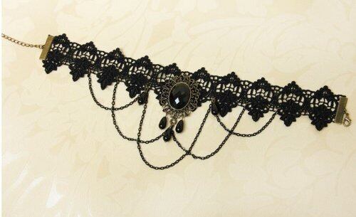 [マドルガーダ]Madrugada ゴスロリ チョーカー オニキス風 ローズ レース ベロア 中世アンティーク コスチューム用小物 レディース 【ブラックローズ リング 付き】2点セット (オニキス風)