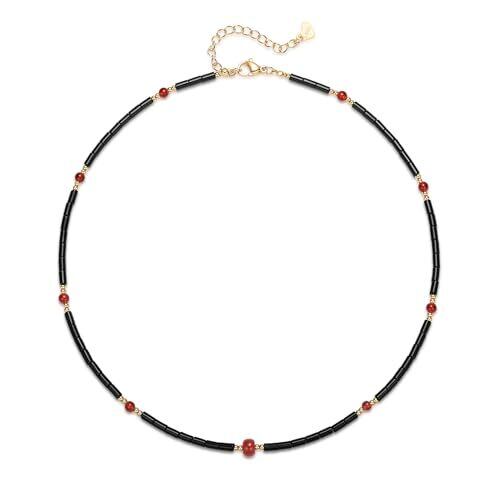 [Stjarna] ターコイズ ブラックオニキス ネックレス レディース 手作り 夏のビーズチョーカー 赤 天然石 ネックレス ジュエリー