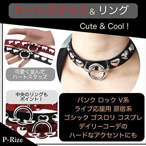[P-Rize] チョーカー レディース ネックレス ハート スタッズ & リング レザー パンク ロック V系 ヴィジュアル ゴシック 衣装 コスプレ 原宿 系