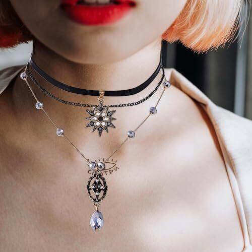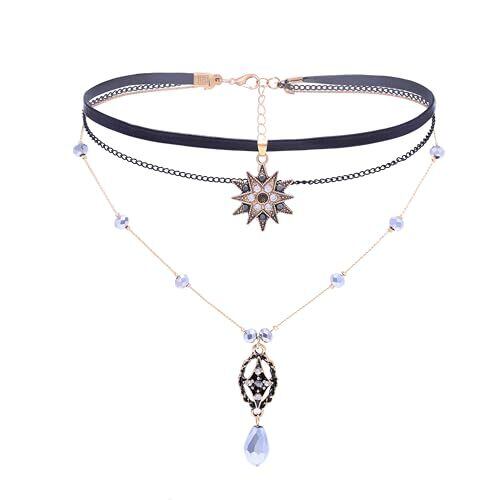 三重 太陽 ペンダントチョーカー ブラック ビーズ 鎖骨 チェーンチョーカー 細め レーディス チョーカー ネックレス 結婚式 発表会 パーティー 成人式 披露宴 レーディス