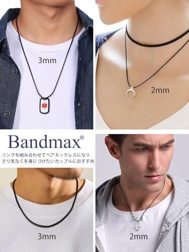 [Bandmax] 紐 ネックレス メンズ チェーンのみ ブラック 金アレ対応 防水 ワックスコード シンプル 幅3mm 長さ40cm/45cm/50cm/55cm/60cm