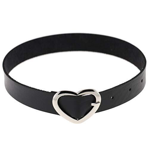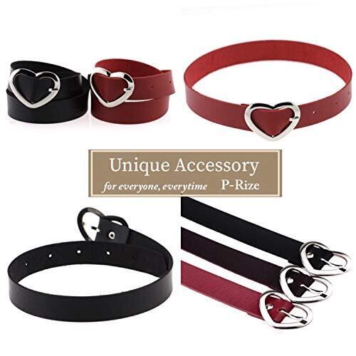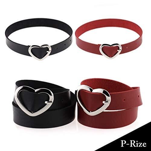 [P-Rize] 2way レザー チョーカー ブレスレット レディース ハート バックル ネックレス 地雷系 量産型 パンク ロック V系 ヴィジュアル ゴシック 衣装 コスプレ 原宿 系 (ブラック)