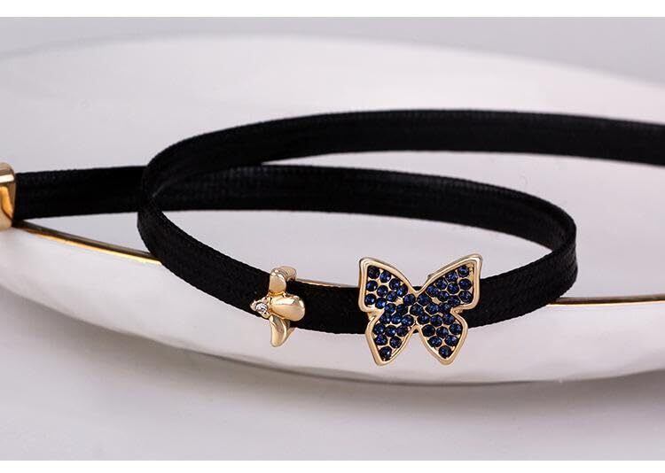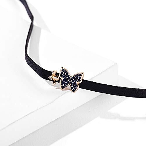 [Deelfel] チョーカーネックレス レディース 蝶ペンダント ブラック 合皮ストラップ 人工水晶 32+7cm アジャスタブル ゴシックスタイル ファッションアクセサリー