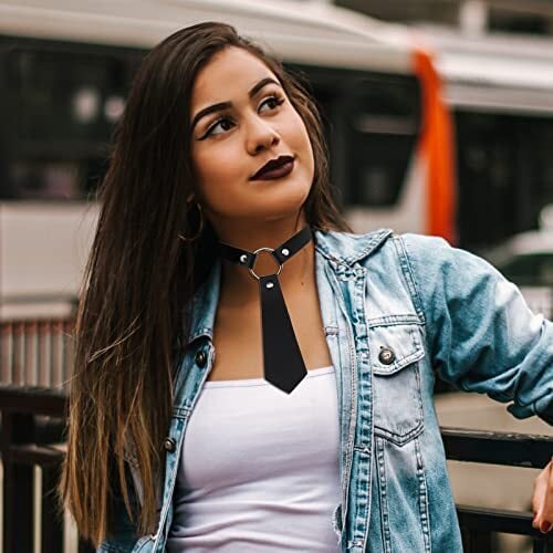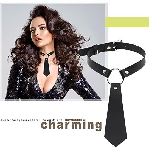 [Flongo] レディース 首輪 人間 チョーカー ネクタイ: ネックレス レザー 革 調整可能 パンク系 ヒップホップ 原宿系 ファッション-アクセサリー 彼女に バレンタインデー ホワイトデー クリスマス プレゼント 袋付き