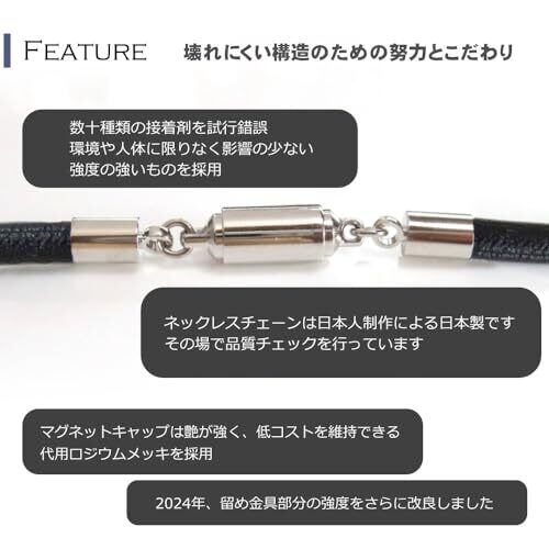 本革 レザー ネックレス チョーカー チェーン 便利 マグネット式 (ブラック 黒) 型崩れしにくい 太さ 3mm 選べる長さ 38cm~60cm 日本製