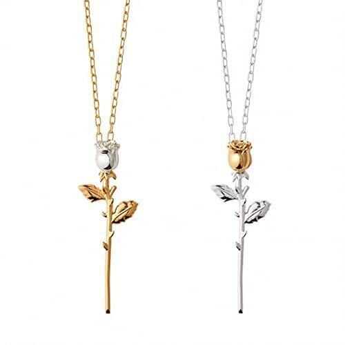 [Rockyu] ネックレス メンズ レディース シルバー 金属アレルギー対応 ローズネックレス 花 フラワー バラネックレス 可愛い ローズペンダント おしゃれ チタン 結婚式 アクセサリー