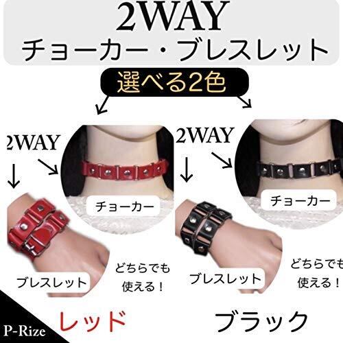 【P-Rize】 2WAY チョーカー ブレスレット レディース レザー 連結 タイプ ネックレス レッド 地雷系 パンク ロック V系 ヴィジュアル ゴシック 衣装 コスプレ 原宿 系 (レッド)