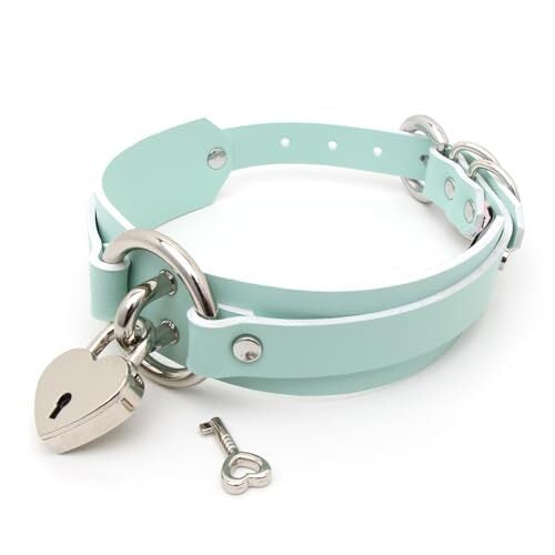 心込めた手作り商品 良品PUレザーと合金部品で加工 2層革で重ねて加工され、上段ベルト幅は1.5CM、下層ベルト幅は3cmです。 首に優しくフィットして29-36cmまで調整できます。 フロント部分にシンプルリングとハート形南京錠付き(カギ1枚セットされ) 美しいピンクのギフトボックス包装