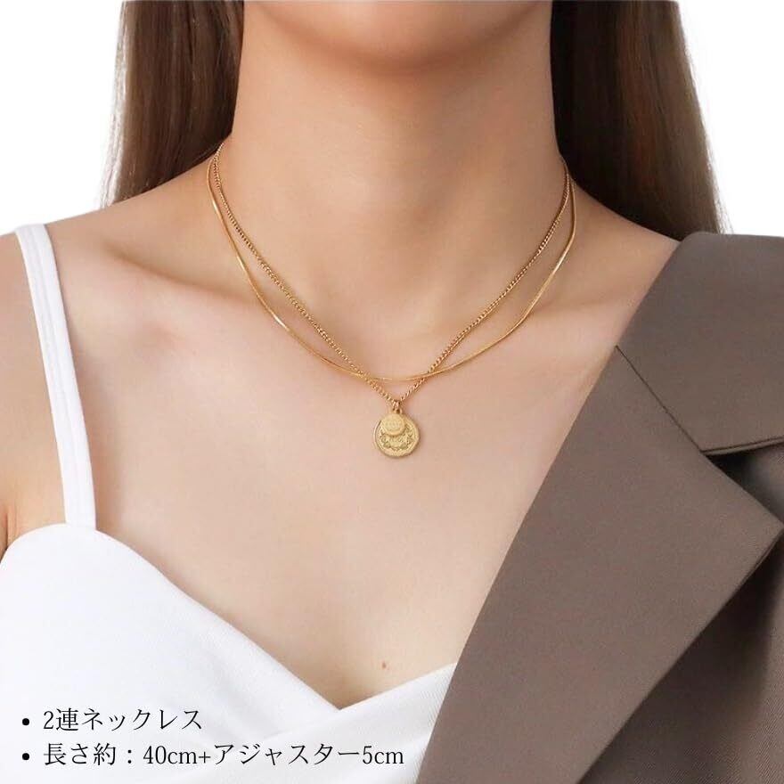3WAY仕様: 2本のネックレスを単体で、または重ね付けで楽しめる多様なスタイリングが可能 サイズ詳細: メダルネックレスは42cm/44cm+アジャスター5cm、マンテルチョーカーは38cmの長さで着用可能 高品質素材: ステンレス製で錆びにくく、金属アレルギーの方にも安心な仕様 デザイン: ミニメダルチャーム(約15mm/7mm)付きのチェーンと、シンプルなボールチェーンの2本セット 上品な仕上げ: K18金メッキを施した、カジュアルからフォーマルまで対応できる洗練されたゴールドカラー