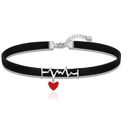 [IDOLCO] チョーカー 首輪 レディース 黒 地雷系 ネックレス ハートペンダント付き シルバー925 ロックPUNKパンクファッション ベルト ネックレス チョーカー おしゃれ かわいい 首輪 アクセサリー サイズ調整可能