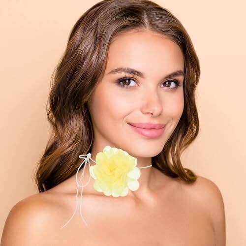 スタイル:カメリア;カラー:イエロー;素材:布;花のサイズ:9.1 x 9.1 cm / 3.58 x 3.58 インチ;ネックレスのサイズ:210 cm / 6.89 フィート / 82.68 インチ;パッケージに含まれるもの:フラワーチョーカーネックレス x 1 利点:繊細な花が飾られ、どこへ行ってもファッションステートメントを作ります。 このユニークで目を引くネックレスで群を抜いて目立ちます。 多目的なデザインで、どんな場面にも適しており、さまざまな服やドレスとマッチングできます。