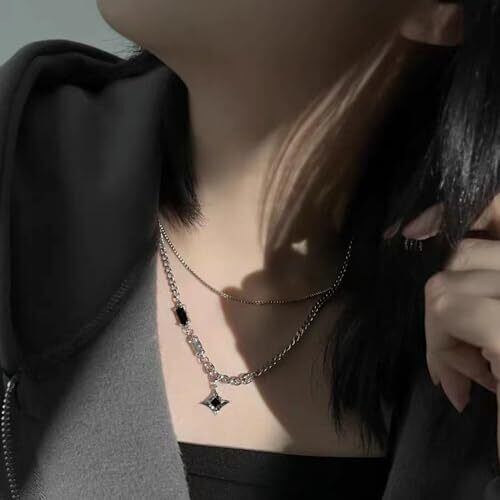 [Ostory] ネックレス オシャレな 星 ダブルチェーン ネックレス ペンダント サージカルステンレス 金属アレルギー対応 ネックレス メンズ/レディース ファッション アクセサリー
