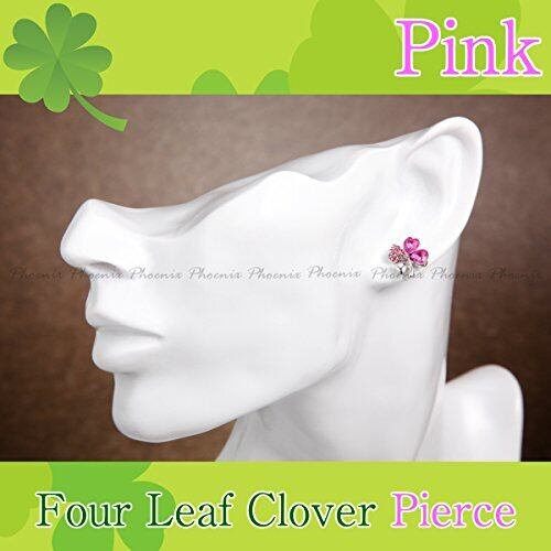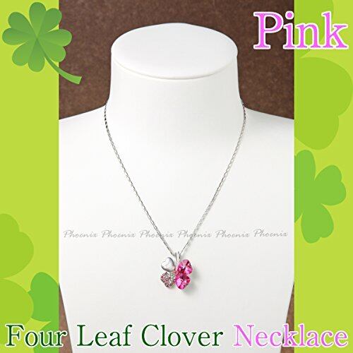 [Phoenix] 四つ葉のクローバー ネックレス & ブレスレット & ピアス & ブローチ 計 4種セット ジュエリー ファッション アクセサリー レディース 合金 人工水晶 エレガント 幸せな 幸運 四つ葉 クローバー フラワー ネックレス (ピンク)
