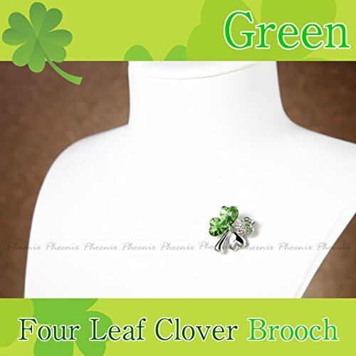 [Phoenix] 四つ葉のクローバー ネックレス & ブレスレット & ピアス & ブローチ 計 4種セット ジュエリー ファッション アクセサリー レディース 合金 人工水晶 エレガント 幸せな 幸運 四つ葉 クローバー フラワー ネックレス (グリーン)