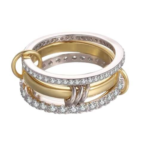 【3連リングデザイン】: 18Kゴールドとシルバーのツートーンカラーで、3連リングが織りなす上品な重ね付けデザイン,スタイル: 3本のリングが絡み合う独創的なデザインで、指元をエレガントに演出 【Rockyu 指輪】装飾: 美しいクリスタルとキュービックジルコニアが全体に施され、贅沢な輝きを放つ,素材構成: 高品質な18Kゴールドとシルバーメッキの組み合わせで、上質な仕上がりを実現 【用途】: パーティーや結婚式、デイリー使いまで幅広いシーンで活躍するファッションリング 【Rockyu ブランド】伝統とモダンを融合したデザイン アンティーク風の繊細な彫刻が施されたリングは、シンプルながらも個性を際立たせます。 【商品保障】ご購入日より365日の商品保障を提供 長期間ご愛用いただけるよう、品質管理を徹底。安心してお使いいただけます。