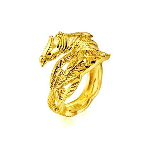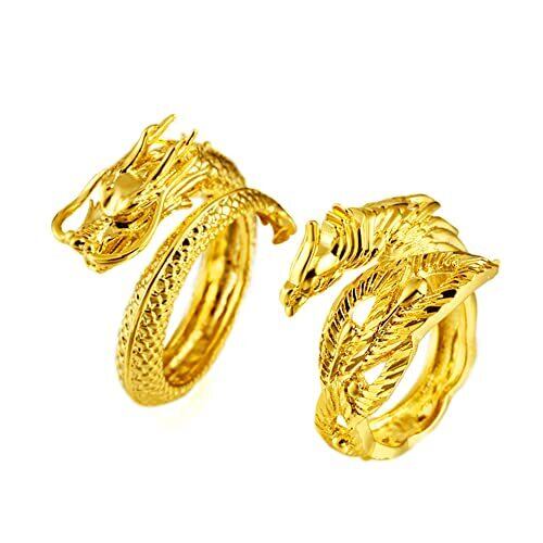 [Rockyu] メンズ フリーサイズ リング 龍彫り 鳳凰 不死鳥 ゴールド鍍金 真鍮 プラチナ鍍金 シルバー おしゃれ サイズ調節可能 幸運 風水 ファッション アクセサリー