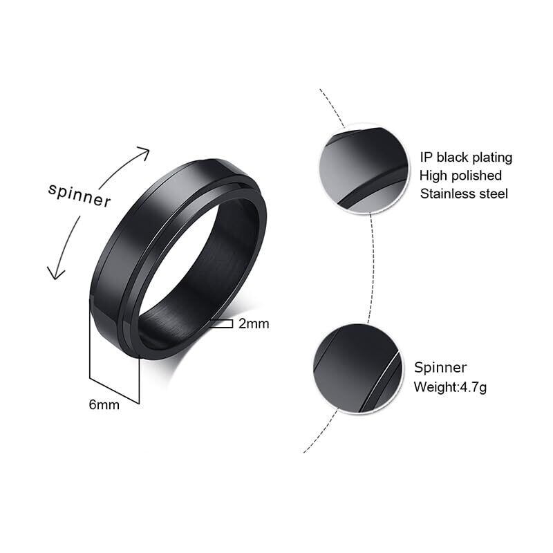 [Rockyu] スピナーリング ステンレス 指輪 人気 金属アレルギー対応 光沢仕上げ 回転式 無地デザイン 幅6mm