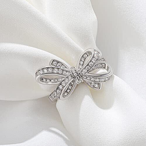 [Jeulia] レディース 指輪 蝶結び 美指リング ダイヤモンドCZ リング キラキラ かわいい 誕生日 パーティー ファッション アクセサリー