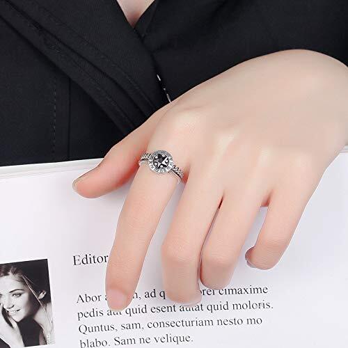 Rockyu 指輪 レディース メンズ フリーサイズ シルバー925 リング 大粒 黒石 英文 刻印 星 円形 純銀製指輪 結婚指輪 婚約指輪 おしゃれ ニューヨークスタイル (A-6MM)
