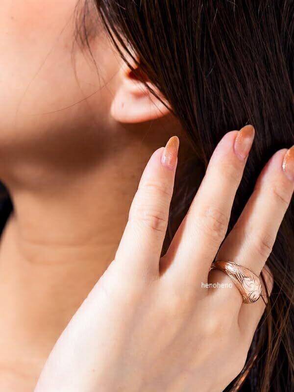 ハワイアンジュエリー リング 指輪 アクセサリー 立体 ボリューム 太め ごつめ ピンクゴールド イエロー ゴールド シルバー henoheno【ステンレスシルバー13号】