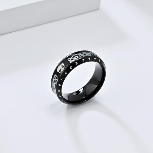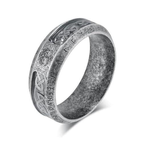 [Rockyu] リング メンズ ステンレス 指輪 北欧 ヴィンテージ ルーン文字 生命の樹 ケルト柄 彫刻 8mm幅 個性的 アンティーク風 おしゃれアクセサリー ハロウィン バレンタインデー プレゼント