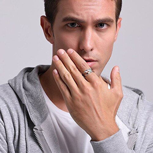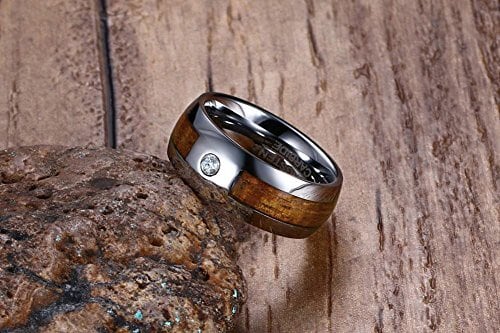 Rockyu 指輪 メンズ リング 21号 タングステン 木 一粒 ジルコニア 耐久性に 幅 8mm