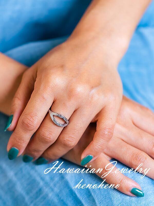 [アロハロカヒ] ハワイアンジュエリー リング 指輪 アクセサリー 金属アレルギー対応 サークル カーブ デザインリング モード サージカルステンレス スクロール henoheno【ステンレスシルバー17号】