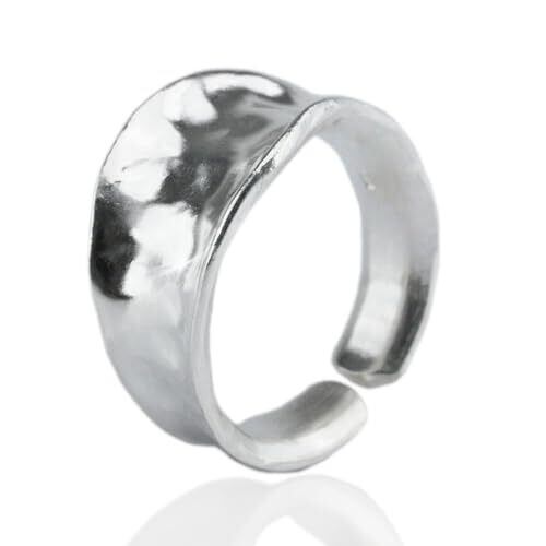 [EPIC BOLEN] sv925 メンズ指輪 シルバーリング フリーサイズ 槌目 凸凹 人気 シルバー 925 シンプル 鎚目 親指 人差し指 調整 可能 メンズ